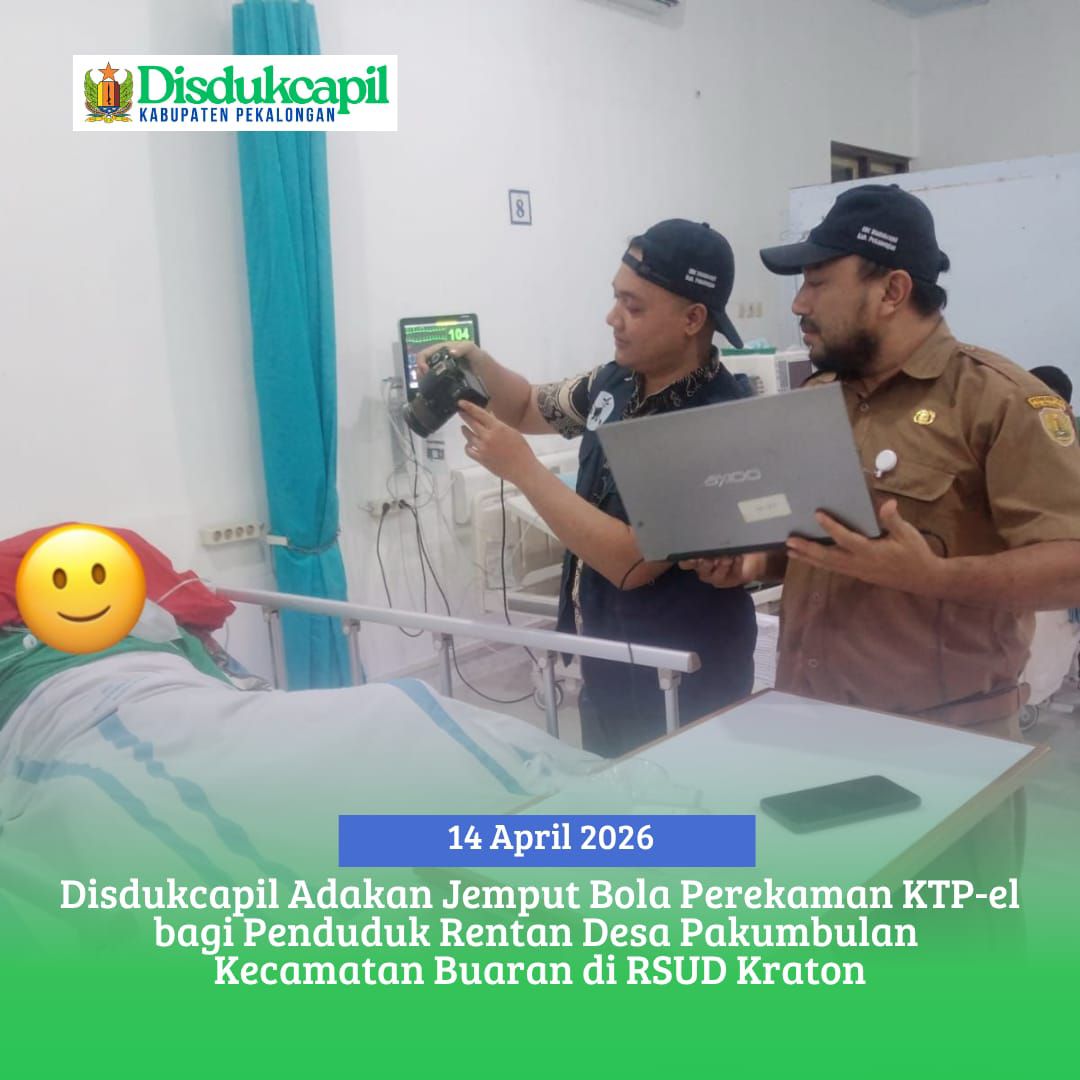Disdukcapil Kabupaten Pekalongan kembali mengadakan Jemput Bola Perekaman KTP-el bagi Penduduk Rentan warga Desa Pakumbulan Kecamatan Buaran yang sedang dirawat di Ruang ICU RSUD Kraton pada Selasa (18/4) hari ini.