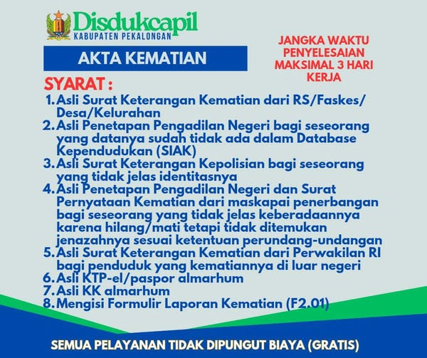 Yuk segera urus Akta Kematian almarhum sebelum terlambat, karena manfaatnya begitu banyak. Jangan menunggu saat dibutuhkan.